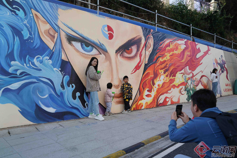 2月22日,昆明市西林社区以国漫《哪吒》为主题的墙绘作品正式揭幕。整组墙绘作品总面积200余平方米,由六面不同风格和人物的主题墙绘组成,其中最长的墙绘长20米。作品以鲜明的色彩和富有张力的构图,生动再现了《哪吒》中的经典场景,将国漫艺术与社区环境完美融合,吸引了众多居民和游客驻足观赏、拍照打卡。
