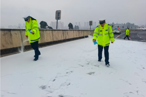 春节临近,寒潮天气却“抵达”昆明,2025年的第一场雪悄然而至,昆明各条国省干道、县、乡村公路上,除了归家的游子,还多了浴“雪”奋战、守护平安的民警辅警。昆明公安交管支队启动雨雪天气交通管理应急处置预案,细化勤务部署、强化应急保障,及时发布安全提示,强化出行引导,确保昆明市道路交通安全顺畅,全力以赴保障群众出行安全。
