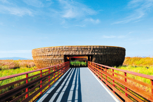 田之桥段,架设离地1米高的栈桥,以低姿态穿过农田湿地,让栈桥与农田湿地风景融合。展现完善的农业尾水净化系统,与周边的农田风景自然融合在一起。