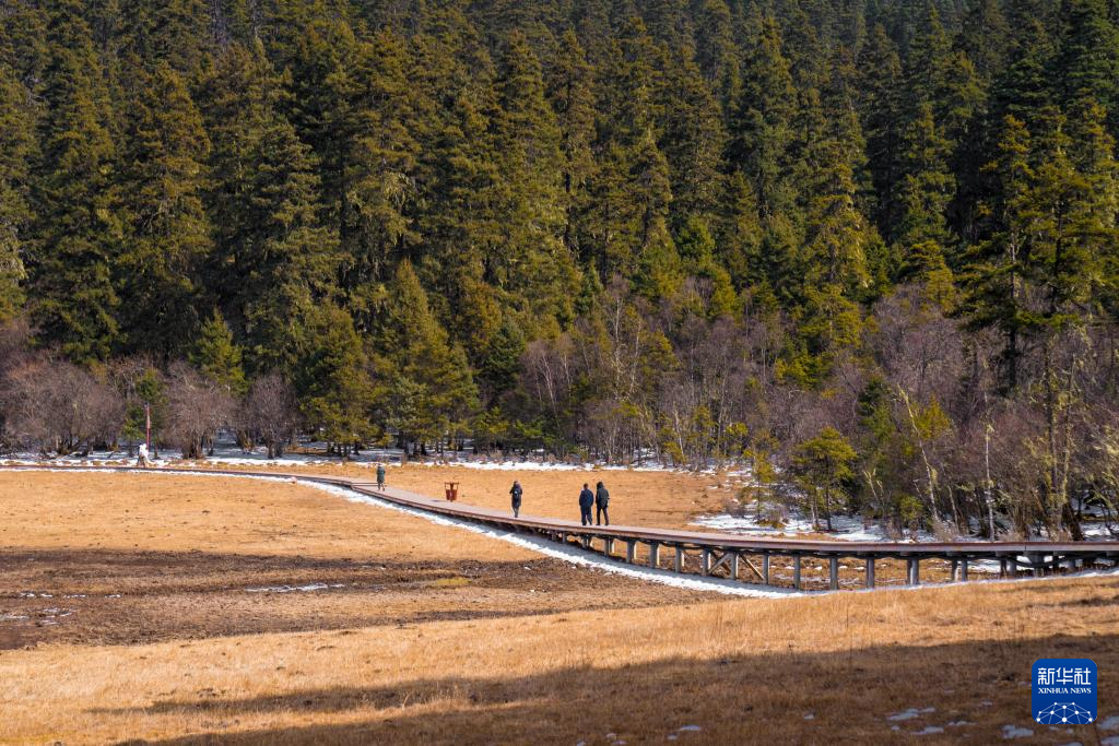 初春时节,云南省迪庆藏族自治州普达措景区景色宜人,高山草甸、原始森林、湖泊湿地构成了一幅美丽的生态画卷,吸引不少游客前来观光。新华社发(彭奕凯 摄)