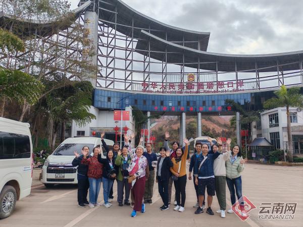 清晨8时,云南磨憨公路口岸已是人潮拥挤,一辆挡风玻璃顶端粘贴着中老泰三国国旗贴纸的中国籍中巴车,已经早早地停在口岸限定区域外,三五成群的泰国籍旅客兴致勃勃地忙着和口岸联检大楼合影打卡。