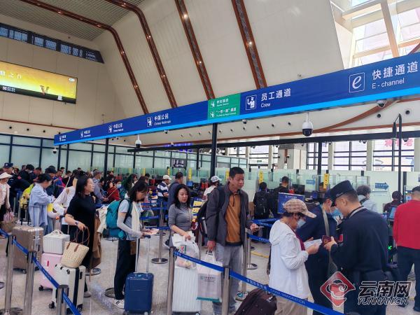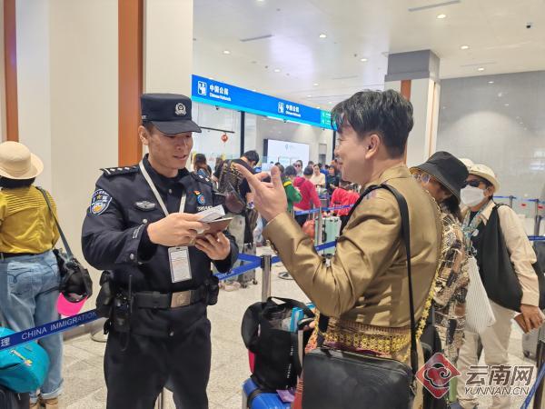 为切实做好泰国籍旅客的出入境边防检查工作,磨憨边检站不断优化勤务,针对泰国籍旅客年纪大、行李多、大多数以团队形式出入境且时间集中等实际,开通团队专用通道,增配泰语专业检查员和台外引导,上线运行旅游团网上申报系统,前置《外国人入境卡》填报点,全面加强与旅行社的沟通联系,施行口岸流量适时通报、出入境旅客“分类分流”、开设“潮汐窗口”等措施,有效确保口岸通关高效顺畅。