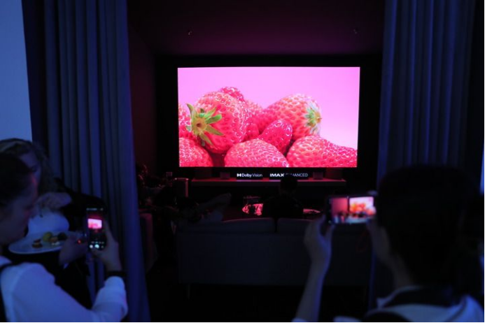 在德国柏林国际消费电子展极米科技展区,参观者拍摄新款投影产品(2024年9月6日摄)。新华社记者 杜哲宇 摄