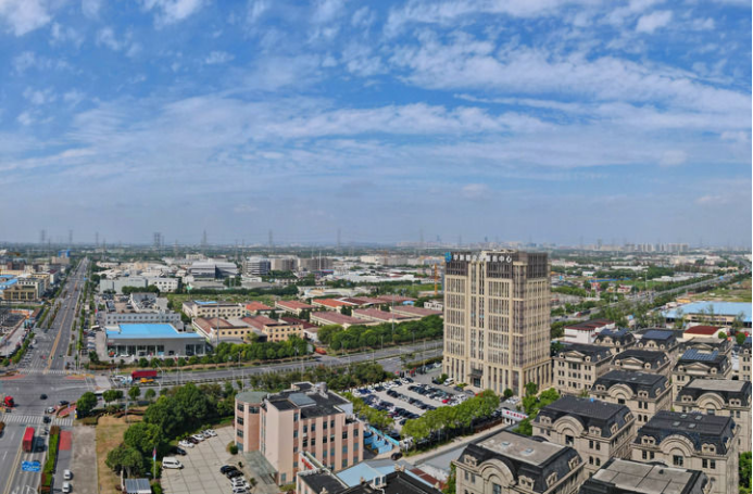 这是位于上海市青浦区的华新镇企业服务中心大楼(无人机照片,2024年10月9日摄)。新华社记者 方喆 摄
