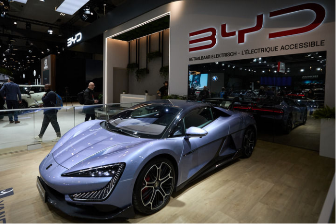 这是在比利时布鲁塞尔举办的2025布鲁塞尔车展上拍摄的比亚迪汽车(2025年1月10日摄)。新华社记者 孟鼎博 摄