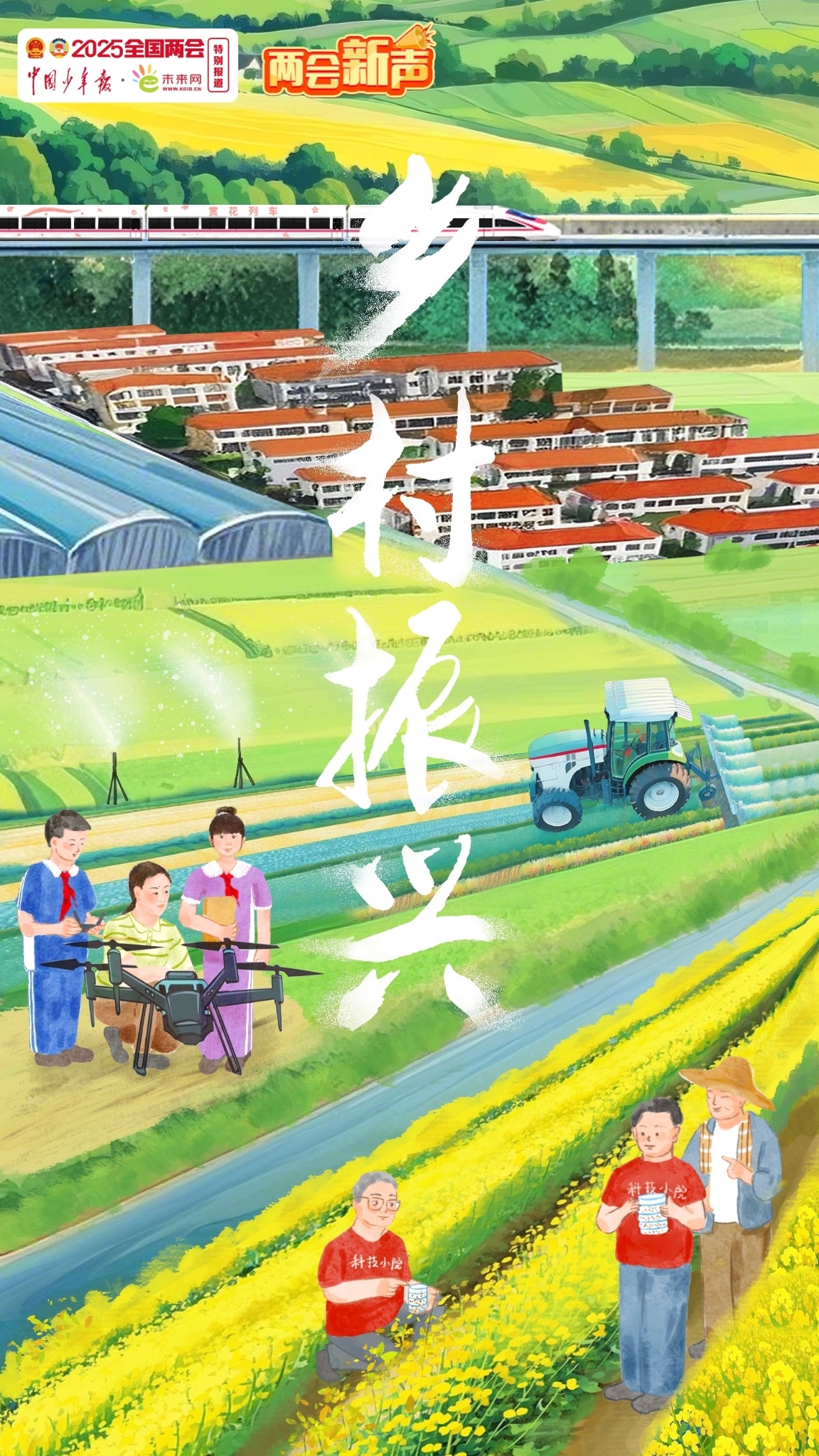 当无人机掠过希望的田野,当电商直播点亮山村的夜晚,当青春身影活跃在基层治理一线,当带着青草泥土芬芳的微风吹拂孩子们的笑脸,我们看到的不仅是农业强、农村美、农民富的生动图景,更是走好中国式现代化之路的深厚底气。我期待着,今年的全国两会能够凝聚起更广泛的共识,激荡出更创新的智慧,让乡村振兴的“发展之歌”“未来之歌”“青春之歌”进一步响彻神州大地!