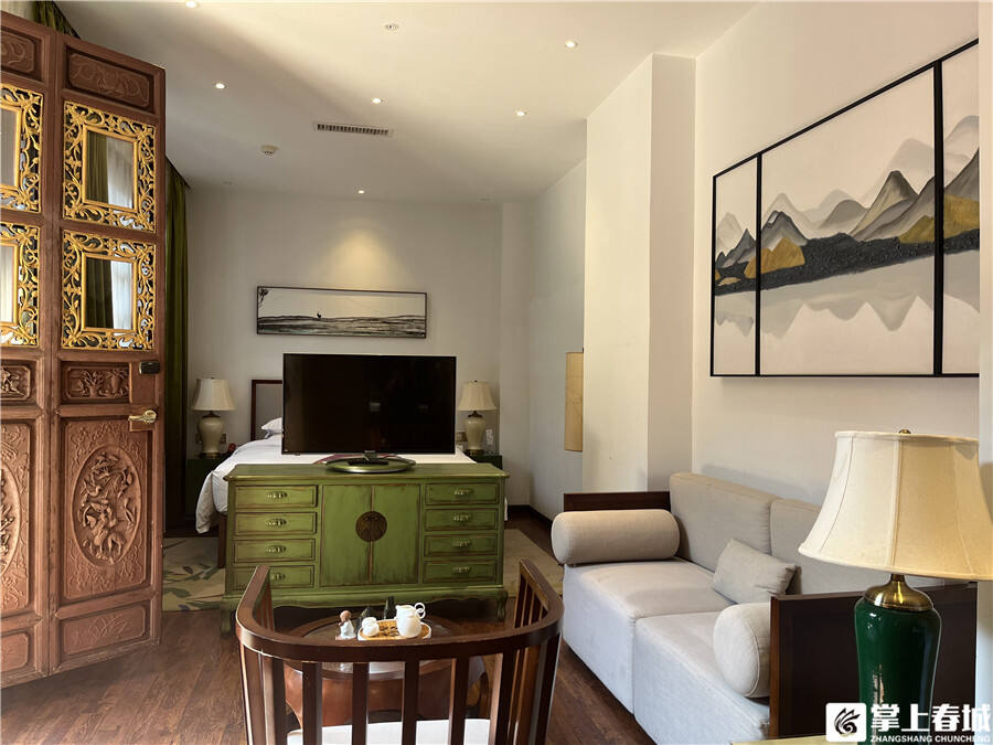 仅从民宿设施上而言,贴近生活场景是“慢生活”必要的元素。缦云端民宿负责人提到,全屋智能化设计是较为基础的,针对年轻游客提供了投影和腾讯会员服务供休闲娱乐,“旅居客需要的不仅是度假,也要有日常生活中各类细化服务。” 泮山居民宿负责人则介绍,民宿特别设置了15—20位的影音室,内部配有KTV和影院两套系统。为了满足疗养休闲的需求也增加了火山石温泉泡池,“光景穿过火山石介入到空间当中,可体验到犹如在洞穴当中泡温泉的感受。”