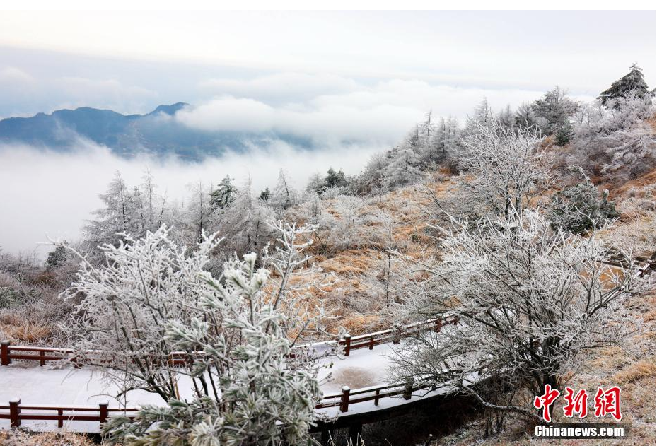 图为3月4日,湖北宜昌百里荒,山峦与树木披上银装。