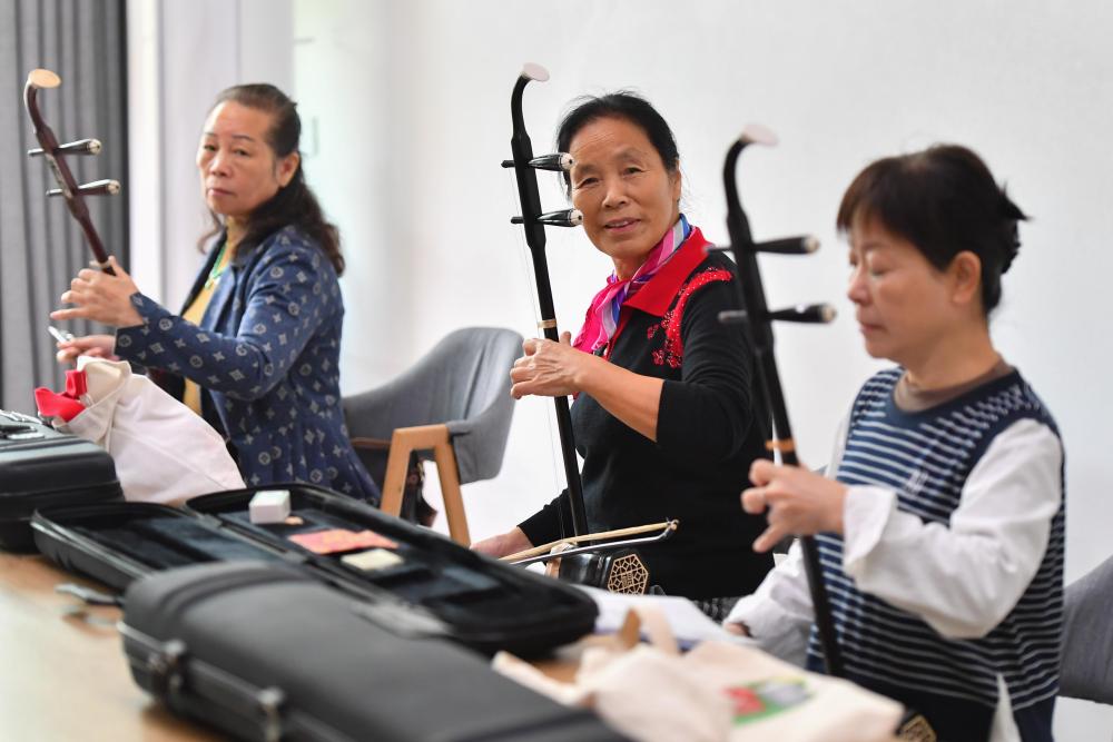 2024年10月25日,在湖南省湘潭市雨湖区城正街街道三义井社区,学员在二胡课上练习。近年来,雨湖区为丰富“银发一族”的文化生活,开办老年学校17家,开设班级80余个。新华社记者 陈泽国 摄