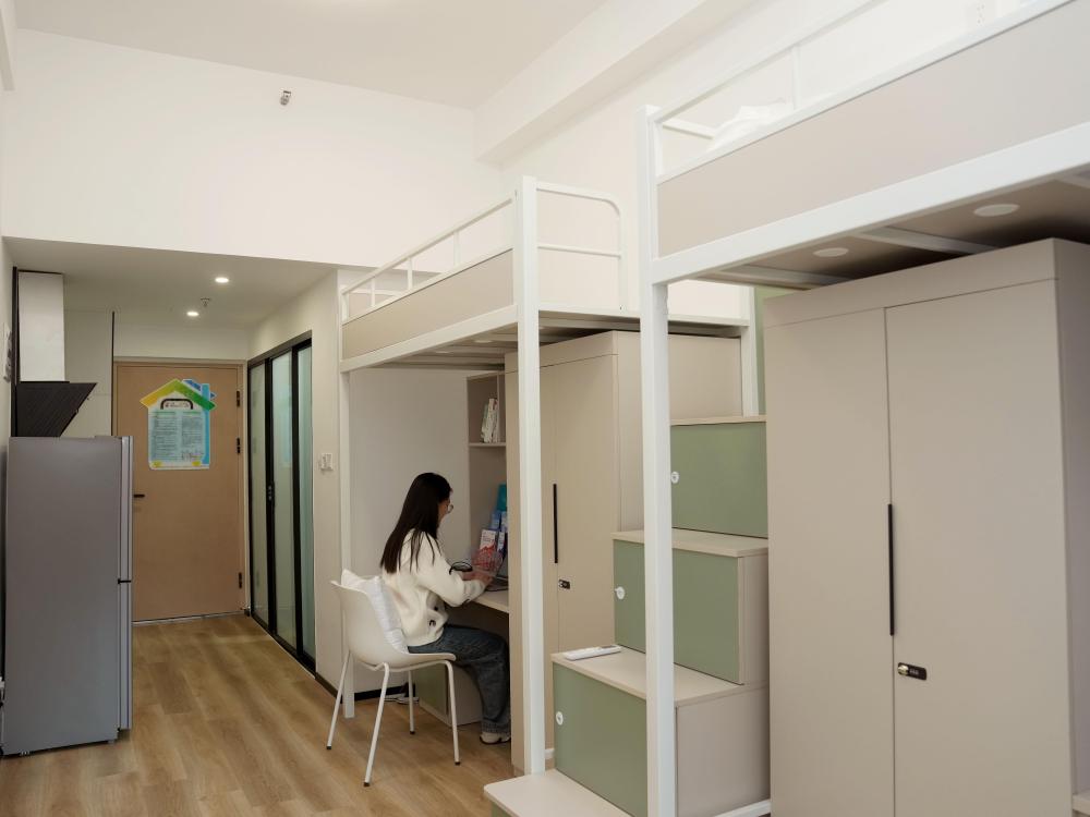 2025年1月17日拍摄的上海虹桥人才公寓的房间内景。上海“青年驿站”以高校应届毕业生为重点服务对象。符合条件的青年可申请在“青年驿站”享受单次不超过3天的免费住宿,全年累计不超过15天。截至2025年1月17日,遍布全市的上海“青年驿站”点位数达到89个。新华社记者 刘颖 摄