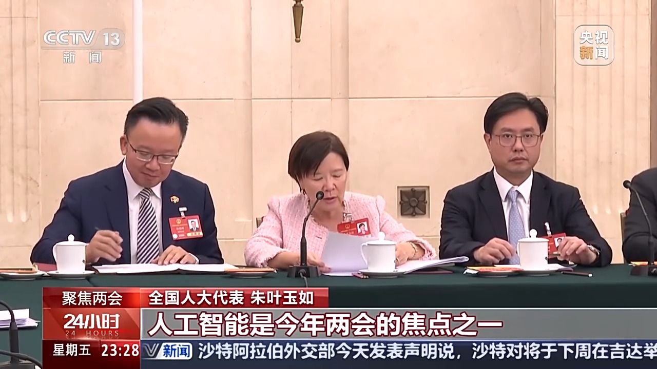 全国人大代表 朱叶玉如:人工智能是今年两会的焦点之一,以DeepSeek为代表的中国企业迅速崛起,展示了中国在人工智能领域的竞争力。香港近期也发布了首个人工智能大语言模型,标志着香港在人工智能领域迈出了关键的一步。今年的政府工作报告明确地提出,要持续推进“人工智能+”行动。我们希望香港能够继续在国际科技合作中扮演重要的角色,为国家科技创新贡献力量。