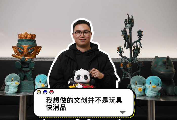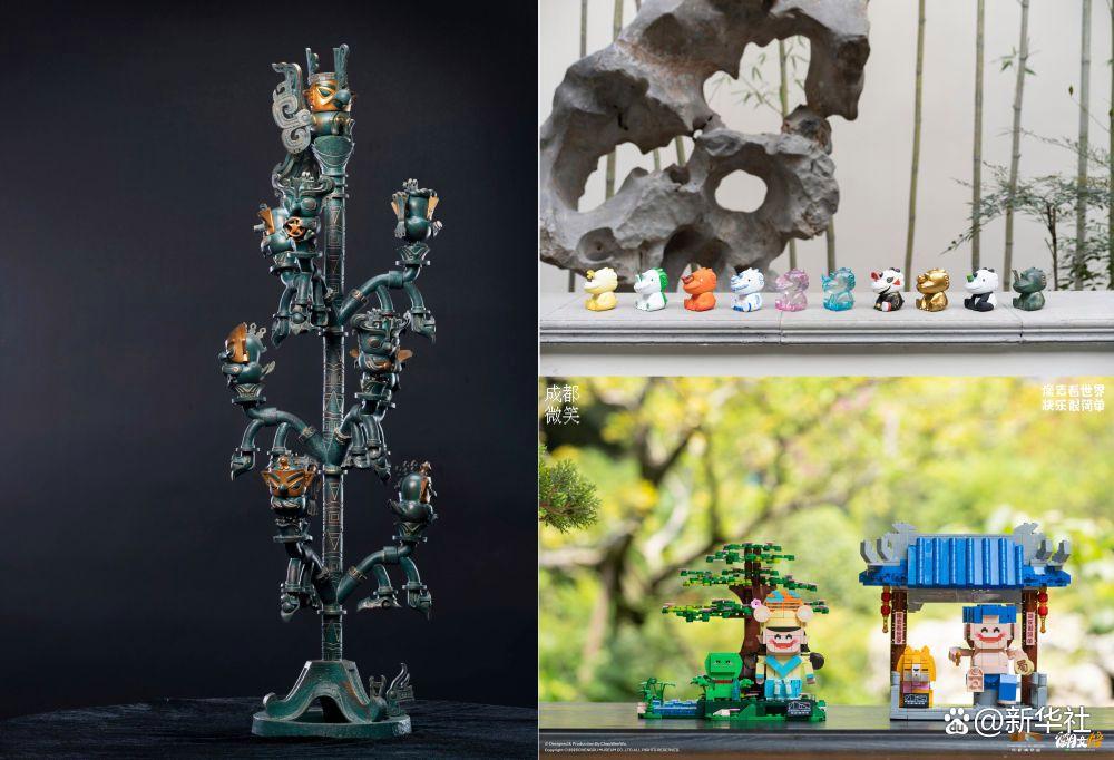 这是曾舟以青铜神树、镇水石犀、说唱俑等为原型设计的部分文创产品。
