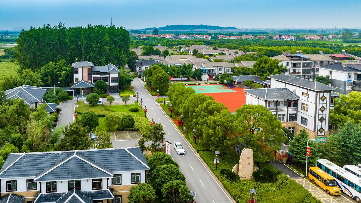 鸟瞰鄂州市峒山村,村容整洁、绿树成荫。(湖北日报全媒记者 薛婷 摄)