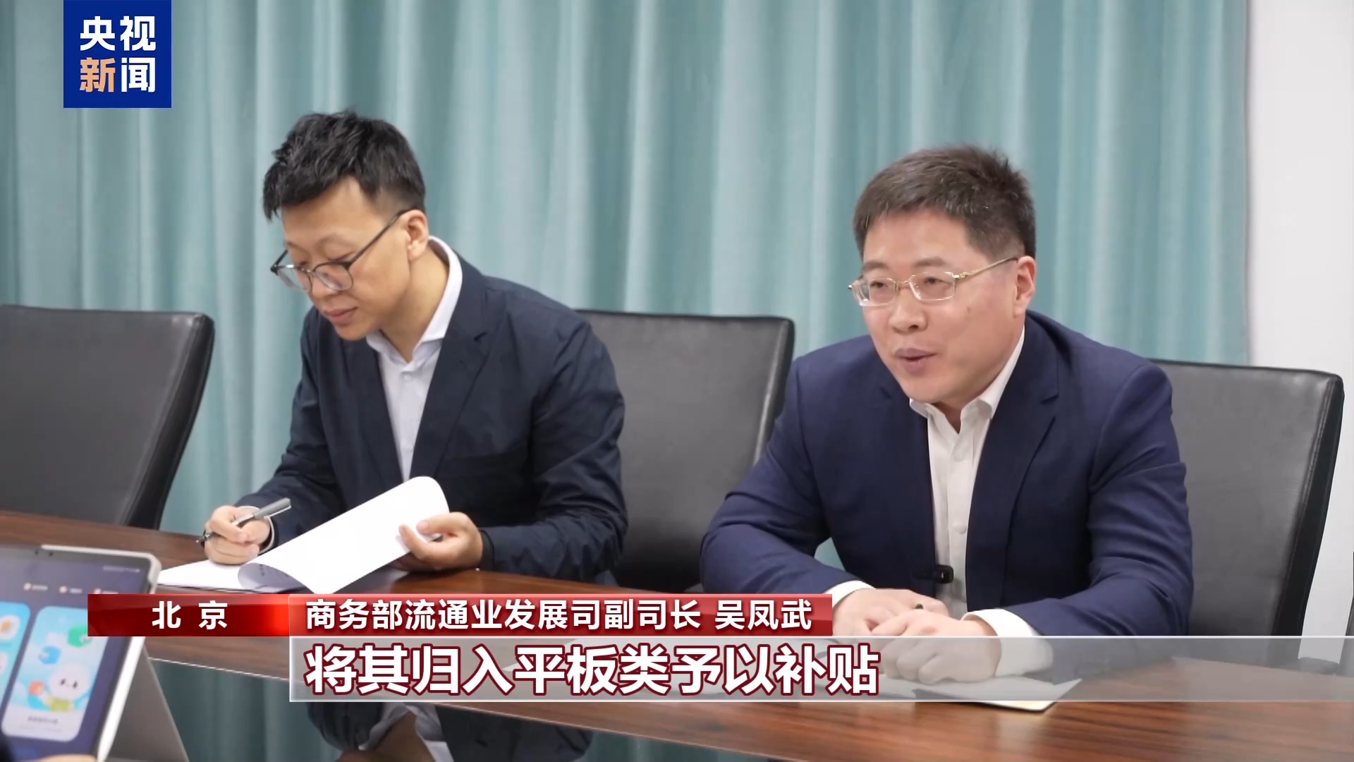 商务部流通业发展司副司长 吴凤武:您提到的学习机,目前我们已经指导各地将其归入平板类予以补贴。