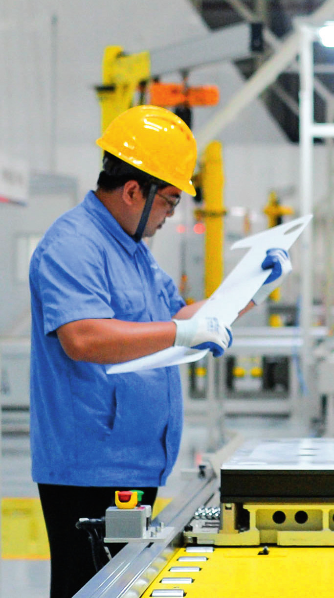 工人在位于广东珠海的纬景储能珠海“超 G 工厂”工作(2024 年5月19日摄)李任滋摄 / 本刊