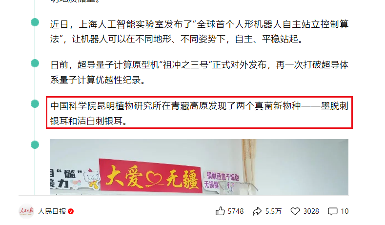 杨祝良团队的这项研究成果,不仅丰富了中国刺银耳属的物种多样性,还为真菌分类学提供了新的分子数据支持。