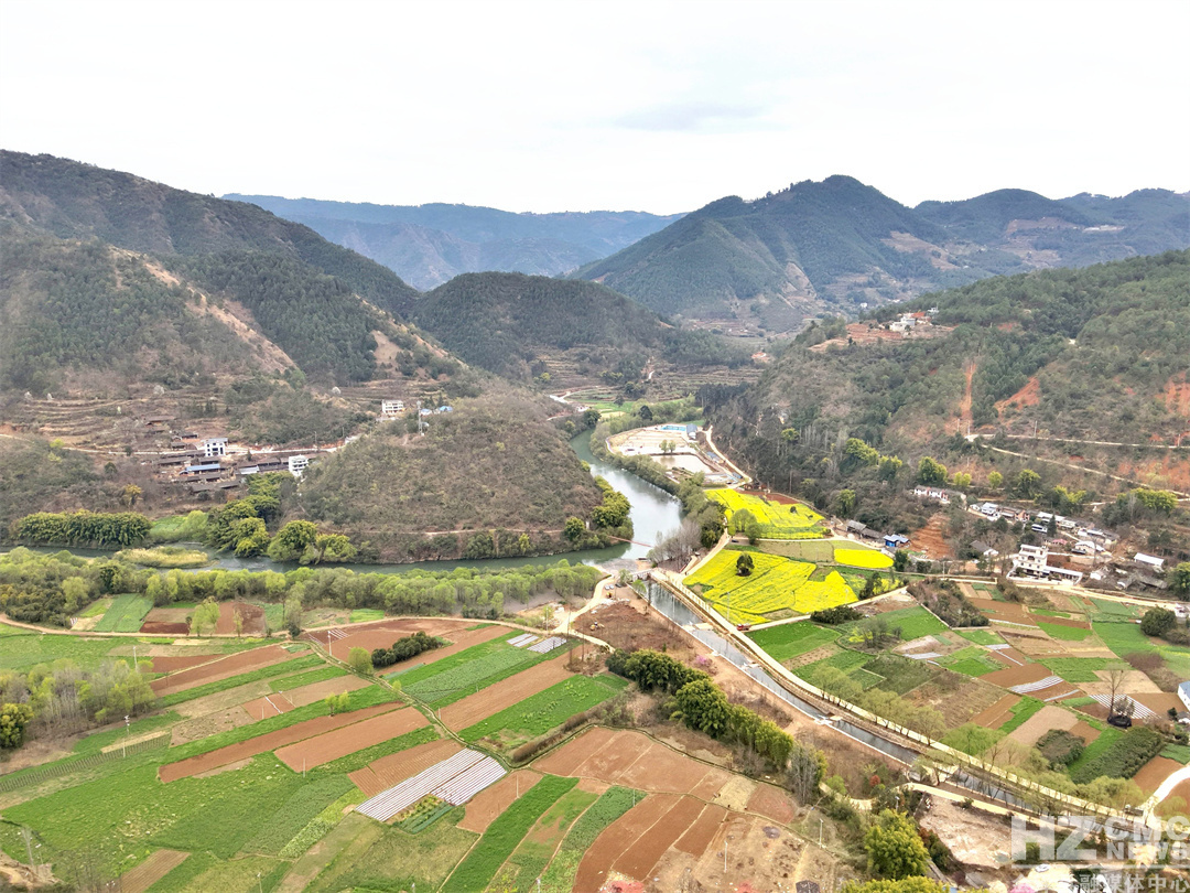 春日的牛栏江会泽鲁纳段,江水如碧玉般澄澈蜿蜒,鱼群在浅滩处悠然游弋,两岸垂柳抽出嫩绿新芽,与江面倒影交织成流动的翡翠带。沿江的现代农业、油菜花海与白墙黛瓦的农舍错落相映,游人穿梭其间拍照打卡,笑声、风声、流水声交织成巩固拓展脱贫攻坚成果同乡村振兴有效衔接的交响曲。