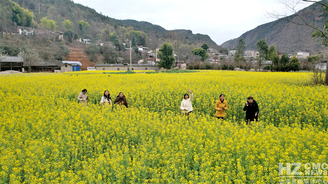 连日来,依江而种的数十亩油菜花已次第绽放,将蜿蜒的江水与连绵的山峦裹入一片流动的金色漩涡。走进花海,成片的油菜花随风摇曳,仿佛给大地披上了流动的金色绸缎。嫩黄的花瓣簇拥成海,在阳光下泛着粼粼波光,蜜蜂穿梭其间,游人拍照打卡,勾勒出一幅鲜活灵动的田园画卷。