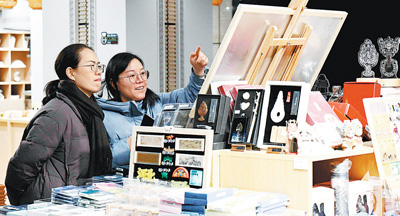 游客在河北博物院文化创意空间选购产品。