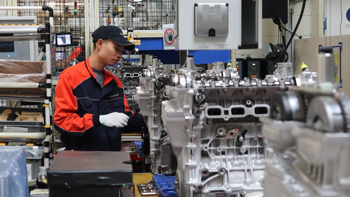 在贵州吉利发动机工厂,42秒完成1台汽车发动机装配;
