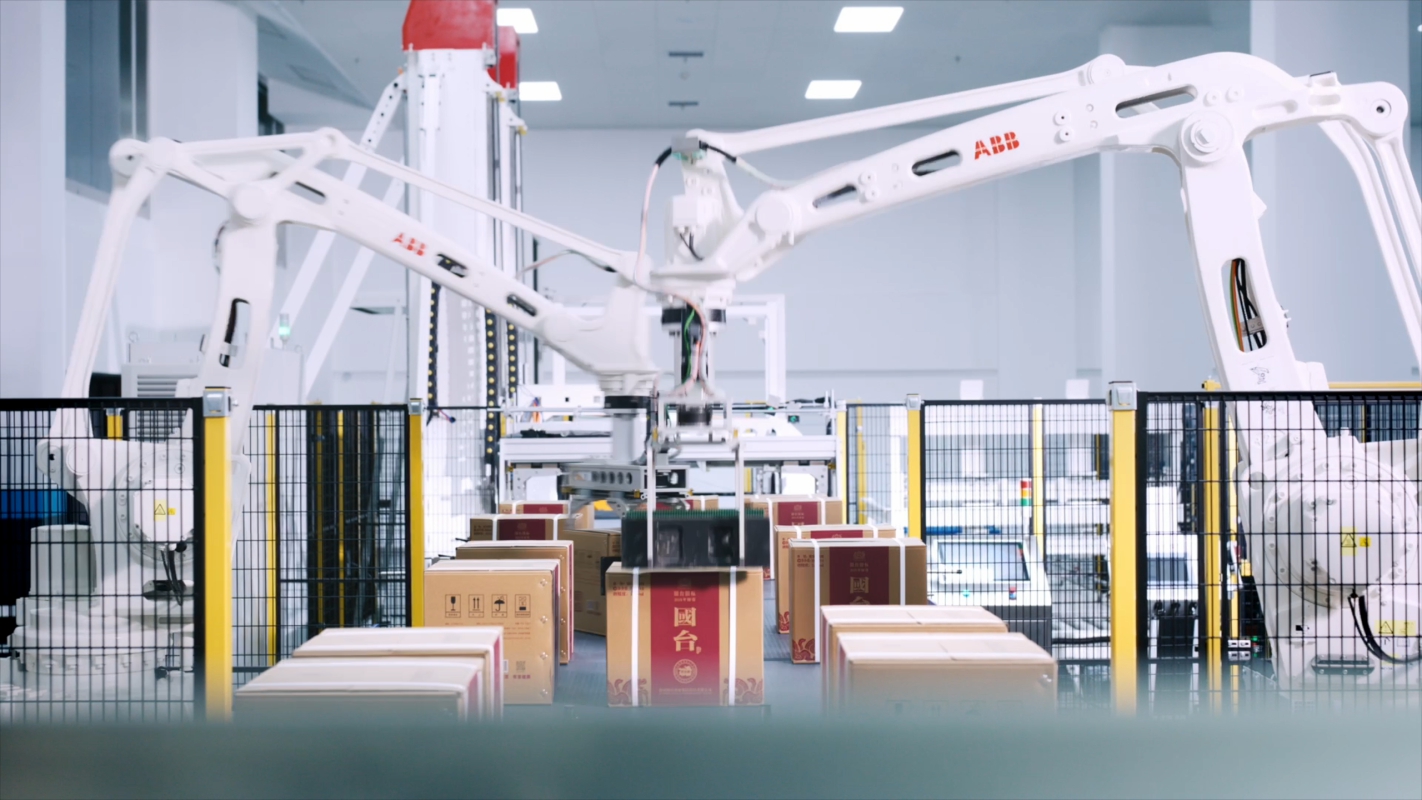 在贵州国台酒业的智能车间,机器人上甑、智能接酒系统等创新技术,展现出传统产业与数字技术融合的生动场景:酿酒、仓储、包装智能化,平均每分钟生产400瓶酱酒。