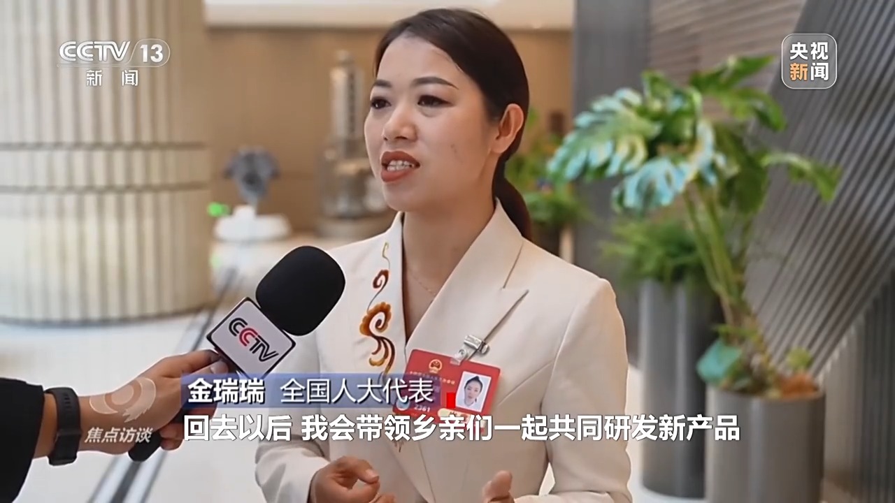 全国人大代表 金瑞瑞:方向和路径都非常清晰,回去以后,我会带领乡亲们一起共同研发新产品,把非遗手工的技艺传承好和发扬好,带着乡亲们共同赚钱,把全国两会擘画的美好愿景转化为实实在在的成绩和收获。