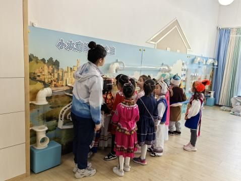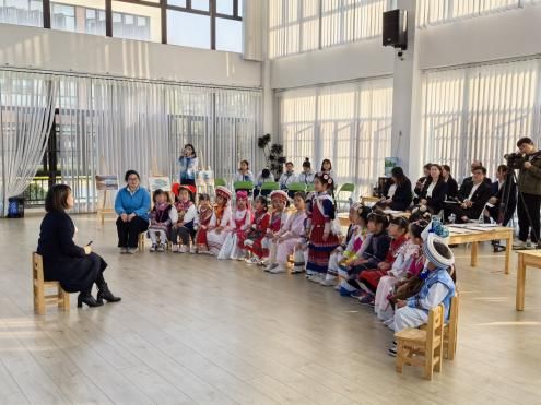 活动伊始,身着苗族银饰、彝族刺绣、白族扎染等民族盛装的孩子们,化身“小小民族生态使者”,开始了室内教学部分,西七幼党支部书记黄薏戎通过生动讲解、互动问答与多媒体展示,引导幼儿理解“水脉相连”的生态理念,激发幼儿保护滇池的使命感。