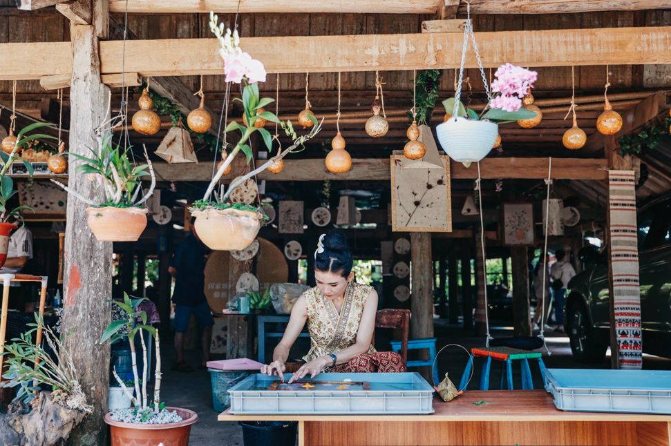 西双版纳聚居着傣族、基诺族、哈尼族等12个世居民族,民族文化鲜活而多元。在基诺族村寨,游客可学习爬树技能、参与竹筒饭制作;哈尼族村落则以采茶、制茶和烤茶文化闻名,游客可亲手体验茶叶从采摘到饮用的全过程。此外,当地许多村寨通过“旅居+”模式引入艺术家、创业者,推动非遗技艺(如傣锦、慢轮制陶、傣族手工造纸)与现代生活交融,赋予传统文化新活力。