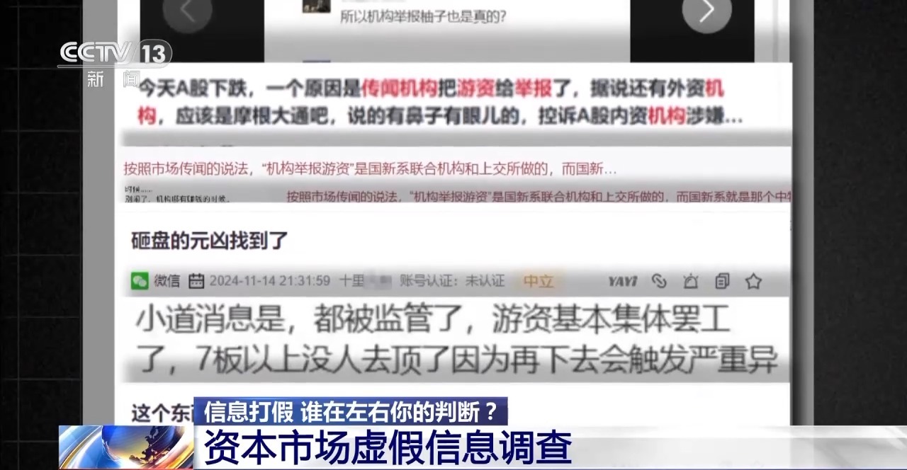 近年来,在资本市场,虚假信息如暗流涌动,不仅直接侵害了投资者的知情权,还可能冲击市场的稳定与秩序。这些虚假信息究竟从何而来?是谁在制造这些虚假信息?背后又暗藏着怎样的利益链条?为了揭开真相,总台央视记者兵分多路,深入调查,带您直击资本市场虚假信息背后的重重迷雾。