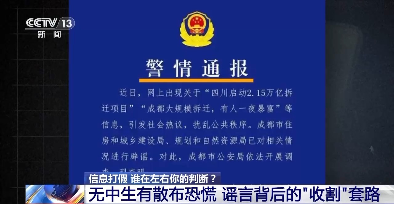 钱先生于是决定耐心持有,可最终等来的不是股价反弹,而是辟谣。成都公安不久后发布通报,这些所谓的股票利好消息,其实是利用人工智能软件生成虚假信息,4人因虚构事实、扰乱公共秩序被行政处罚。