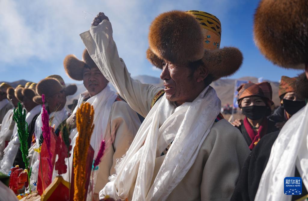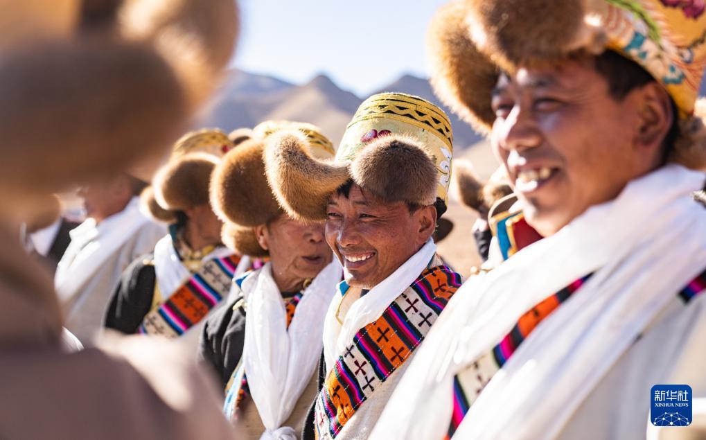 3月16日,拉孜县曲下镇土林村村民身着节日盛装参加春耕典礼。新华社记者 姜帆 摄