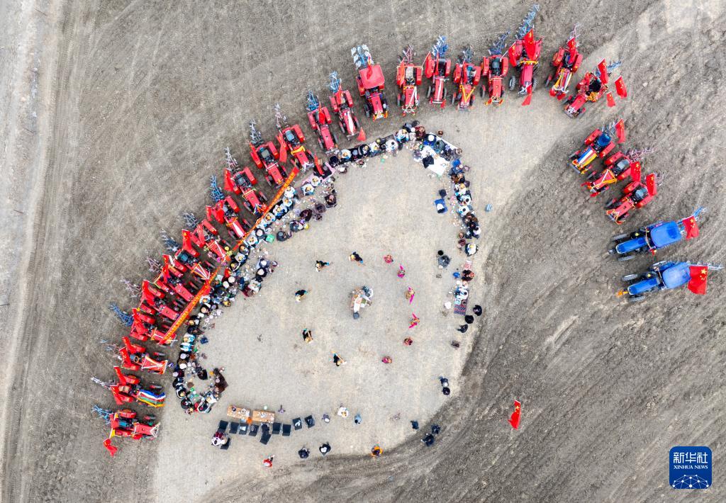 西藏拉孜县曲下镇土林村春耕典礼现场(3月16日摄,无人机照片)。新华社记者 姜帆 摄