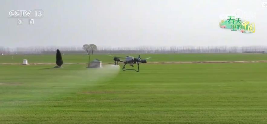在山东济南市,冬小麦正处于田间管理和产量形成的关键期,当地农技人员综合利用植保无人机、水肥一体化智慧滴灌等科技手段,精细化开展田间管理。