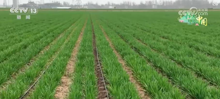 在济南市长清区的一处麦田里,绿油油的麦苗株距整齐均匀、长势良好。一排排滴水灌溉带紧贴在小麦根部,正在匀速缓慢地滴落水珠。今年新安装的水肥一体化智慧滴灌系统,可以一键查看和控制麦田里不同区域的灌溉流量、水肥比例,让麦田春管更加精准高效。