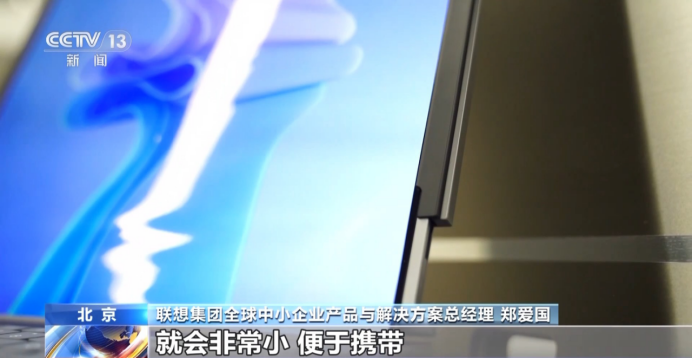 联想集团全球中小企业产品与解决方案总经理 郑爱国:利用AI技术,可以让屏幕随着你的工作的场景调整。比如说在办公室时它就可以自动升起来,这样可以让你获得更大的显示面积,然后在你移动时它可以再降下来,这样整个体积就会非常小,便于携带。