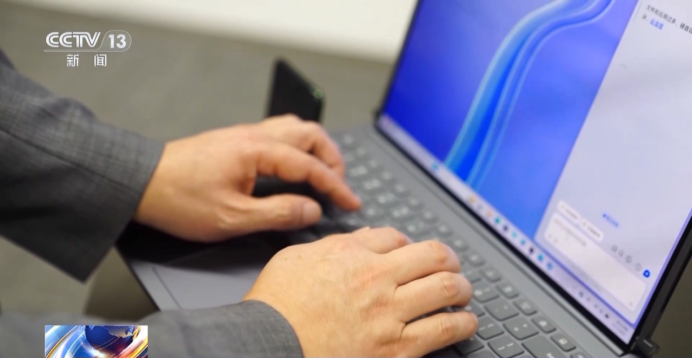 记者在一家电脑企业的展示厅里,看到了一款即将上市,安装了大模型的卷轴屏电脑。