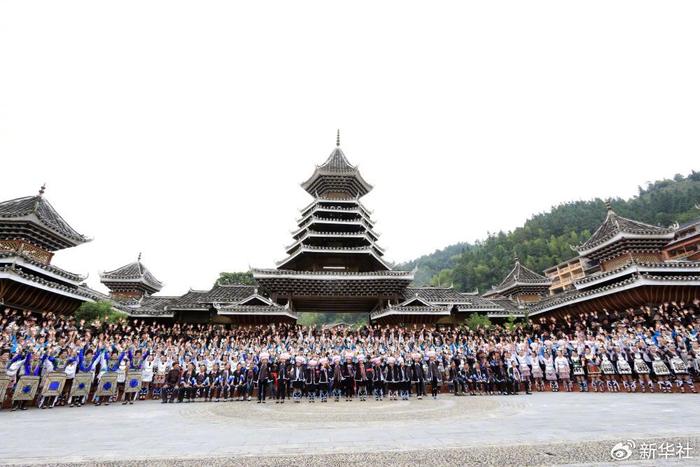 侗族群众近日在黎平县肇兴侗寨寨门前演唱侗族大歌。杨代富 摄