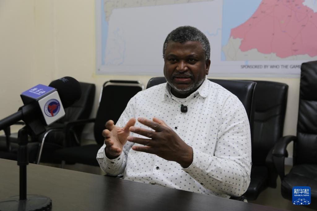 3月17日,冈比亚卫生部长萨马泰在冈比亚首都班珠尔接受新华社记者专访。新华社记者 司源 摄