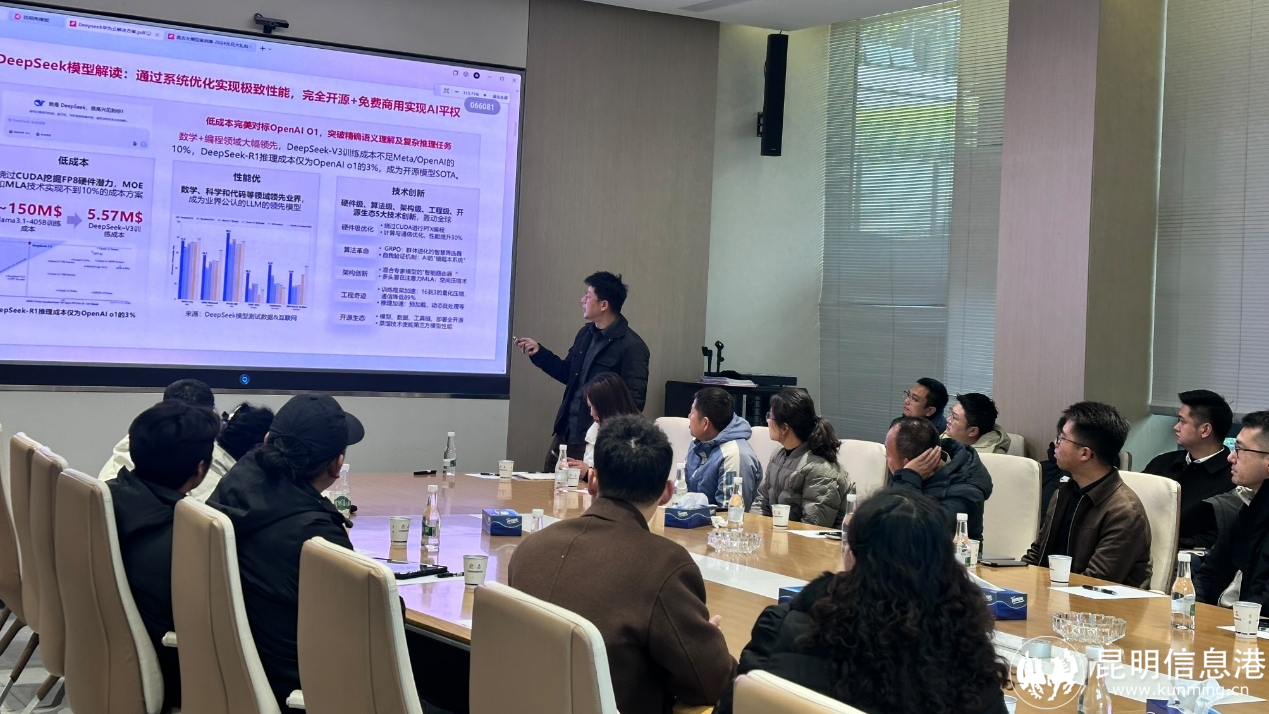 昆明信息港讯 3月19日,由云南沪滇临港昆明科技城产业发展有限公司、云南自由贸易试验区招商服务有限公司、华为云计算技术有限公司联合主办的“DeepSeek如何助力企业市场拓展及创新发展”的专题赋能沙龙活动在科技城园区顺利举办。本次活动吸引到区内40余家企业代表参与,共同探讨数字经济时代下的企业发展新路径。活动通过园区推介、政策解读、专题培训三大环节,为企业提供从政策解读到技术支持的服务全景图,旨在助力企业在数字经济浪潮中抢占发展先机。