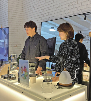 咖啡课堂上,学生们专注地听着金泰浩讲解咖啡豆的挑选、烘焙、手冲制作等知识。教学过程中,金泰浩发现学生们对咖啡的了解并不深入。起初,很多同学觉得咖啡又酸又苦,经过实践,学生们逐渐对咖啡产生浓厚兴趣,有了自己的认知与见解。