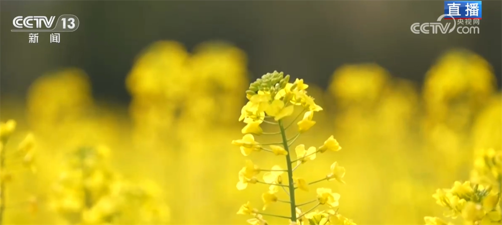在湖南省长沙县江背镇的五福村,大家透过镜头可以看到油菜花都挺直了身姿,在阳光的照射下,每一片花瓣都呈现出金黄色,置身其中还能嗅到淡淡的花香。