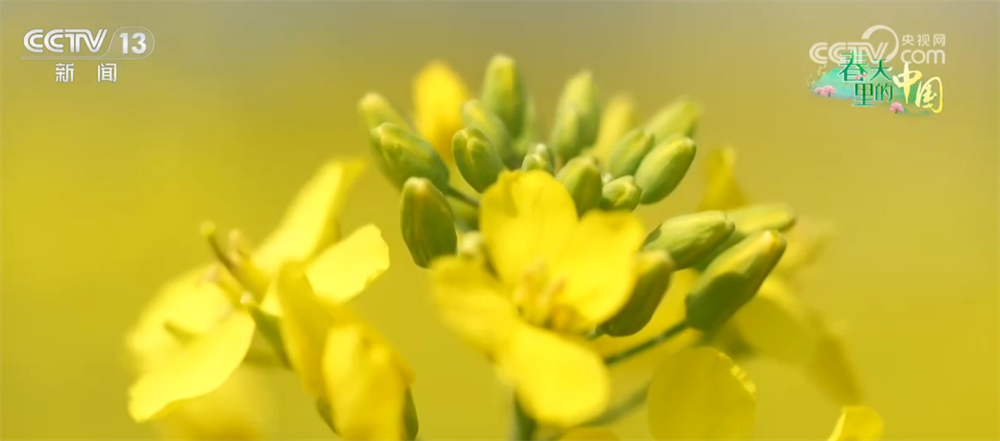 通过航拍画面,我们能够直观地看到这里油菜花的种植非常规整,每一垄油菜花的间距在1.5米左右。通过采访,我们了解到,因为湖南春天的雨水较多,所以油菜采用起垄种植的方式,这样便于田间管理,促进油菜的生长。