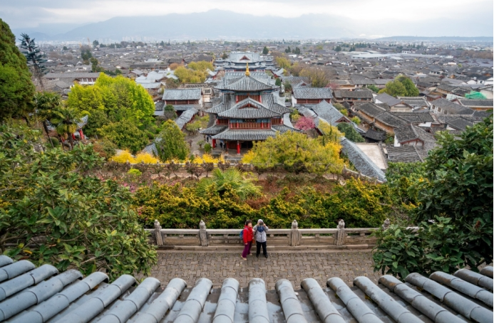 近日,游客在丽江古城木府游玩。新华社记者 陈欣波 摄