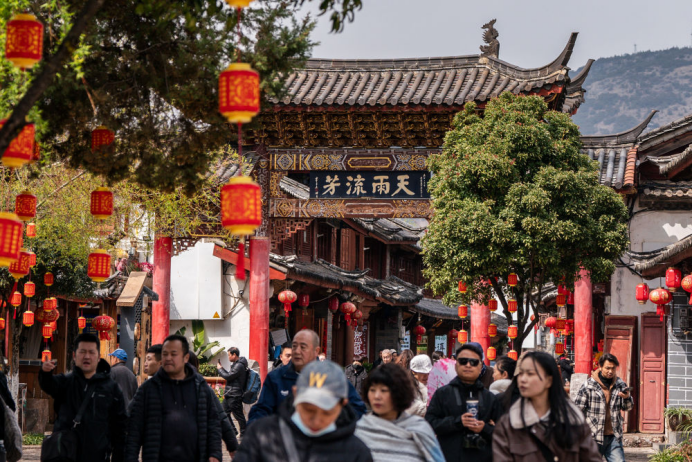 近日,游客在丽江古城游玩。新华社记者 胡超 摄