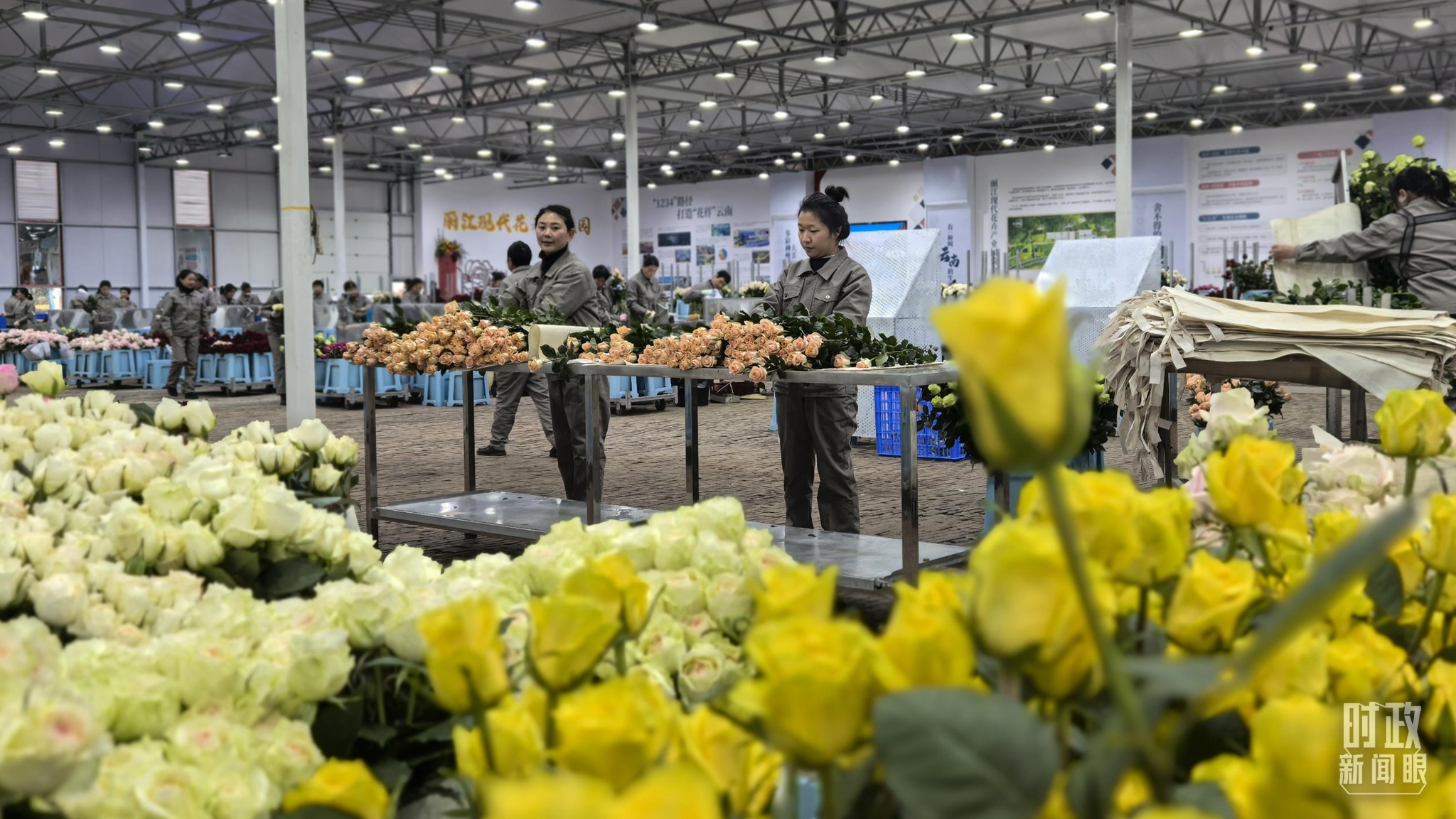 △工人正在对采摘下来的鲜花进行整理、分类。(总台央视记者邢彬拍摄)