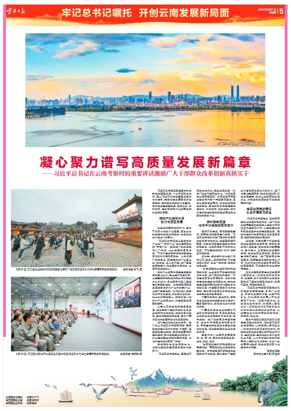 习近平总书记近日在云南考察并发表重要讲话。广大干部群众表示,要以习近平总书记重要讲话精神为指引,完整准确全面贯彻新发展理念,坚持稳中求进工作总基调,着力推动高质量发展,改革创新、真抓实干,在中国式现代化进程中开创发展新局面。