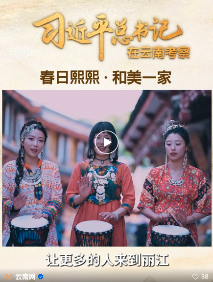 丽江手鼓音乐组合晴天姐妹现场表演,热烈欢迎总书记的到来