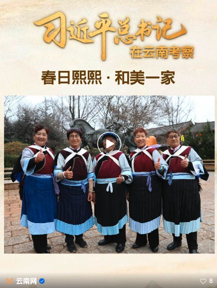 退休文化工作者和占强与众多居民、游客一同载歌载舞欢迎总书记的到来