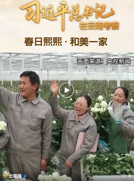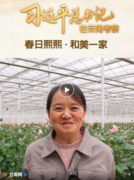 丽江现代花卉产业园职工张英向总书记介绍工作生活情况
