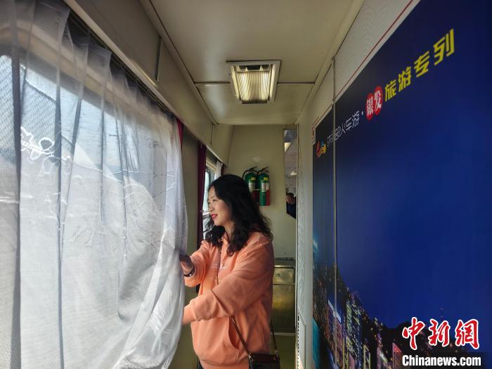 游客乘坐“银发旅游专列”观赏沿途风景。曹文福 摄